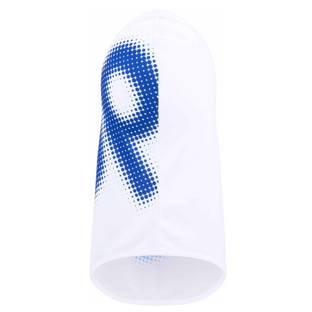 Este acessório icônico apresenta o logotipo da Supreme em um design gráfico de retícula (halftone) em azul vibrante sobre um fundo branco limpo.