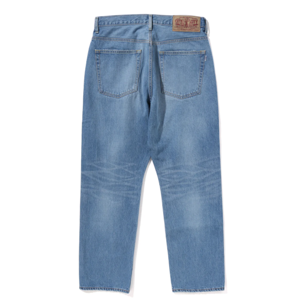 - Detalhes de Acabamento: Inclui passantes para cinto, estilo clássico de cinco bolsos (incluindo bolsos traseiros com a bandeira do logotipo BAPE costurada), braguilha com zíper e botão, e um patch de logo Jacron na parte de trás da cintura.