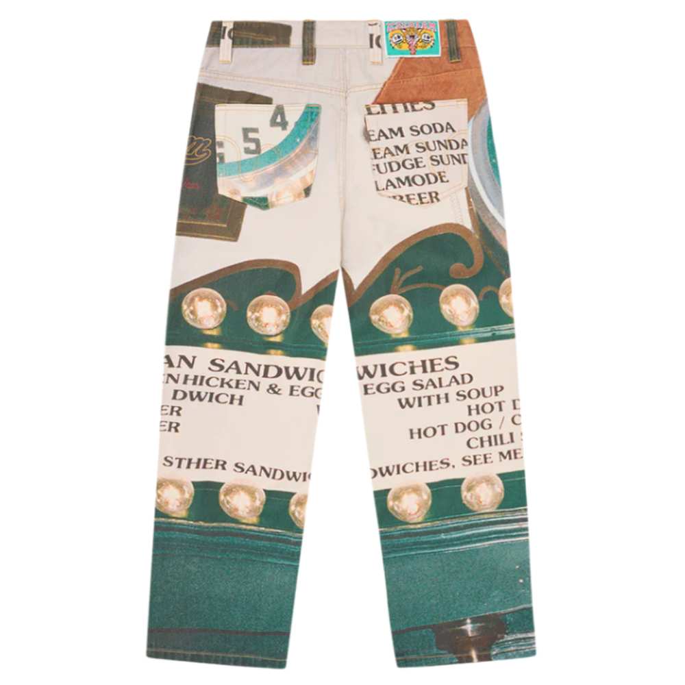 - Estampa Digital “All-Over”: Apresenta gráficos sazonais exclusivos inspirados em cardápios de sorveterias vintage (parlor), incluindo um relógio icônico e detalhes que remetem à cultura retrô americana.