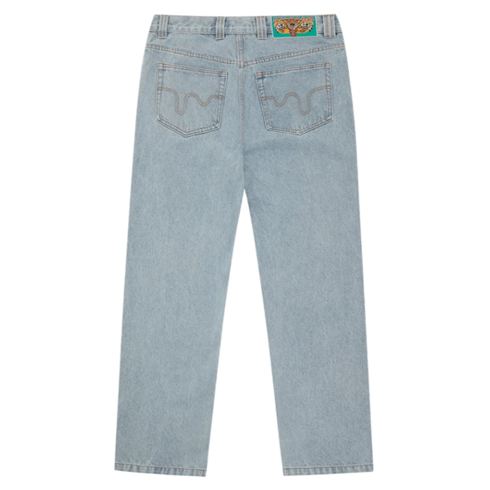 - Lavagem Premium: Denim azul claro (light wash) com acabamento suave e duradouro.