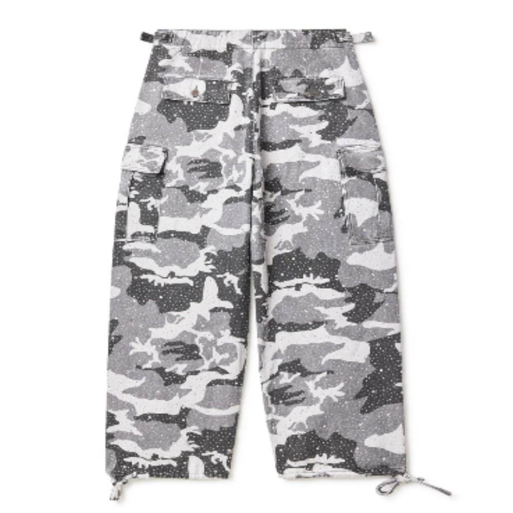 A Calça Winter Crystal Snow Camo da Vale Forever (também conhecida como Valley Sports Division) é uma peça de destaque que funde a funcionalidade do vestuário militar com o luxo do streetwear contemporâneo.