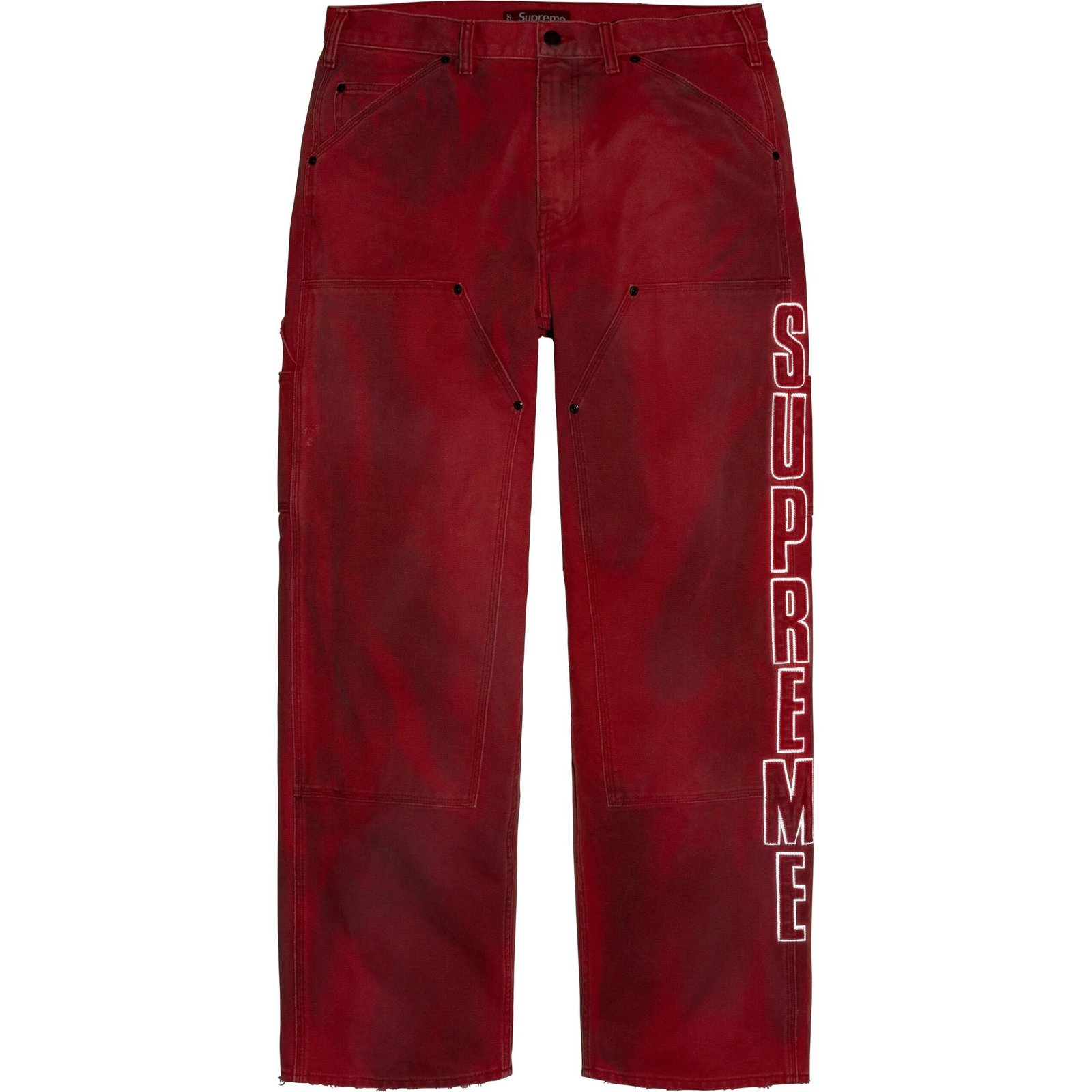 Possiu braguilha de zíper, reforço duplo nos joelhos, bolso único para moedas, rebites de óxido de cobre e bolsos utilitários.
