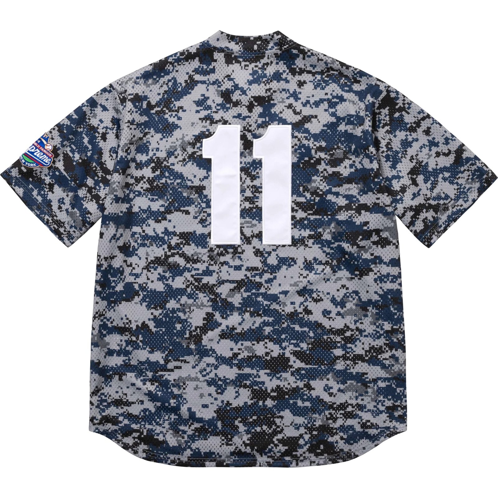 Camisa S Logo Baseball Henley Blue Digital Camo é um item de destaque da coleção SS25 da Supreme.