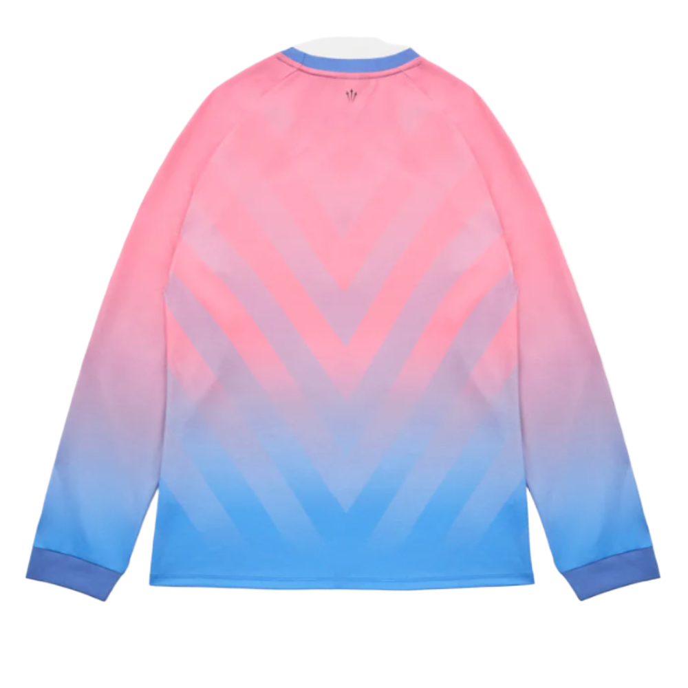 Com um degradê vibrante que vai do rosa suave ao azul celeste, esta peça apresenta um padrão geométrico em “V” sutil na parte inferior, simbolizando a força dos “Leões Alados” de Veneza. É uma explosão de cores que rompe com o tradicional, mantendo a sofisticação que tornou o Venezia uma referência global em design esportivo.