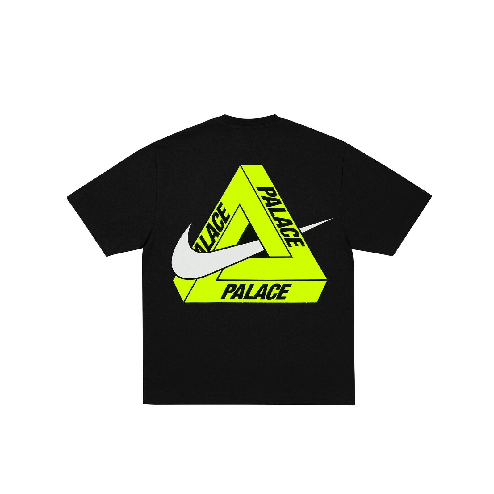 A Palace x Nike Tri-Swoosh T-shirt na cor preta apresenta o logo co-branded “Tri-Swoosh”, que une o icônico Tri-Ferg da Palace com o Swoosh da Nike.
