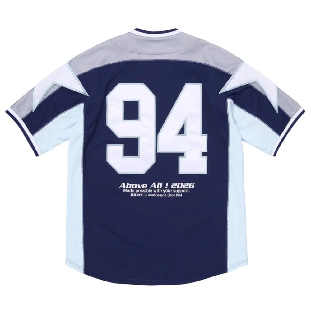 A Supreme Stars Baseball Jersey Navy é uma peça central da coleção Spring/Summer 2026 (SS26), lançada originalmente em 9 de abril de 2026.
