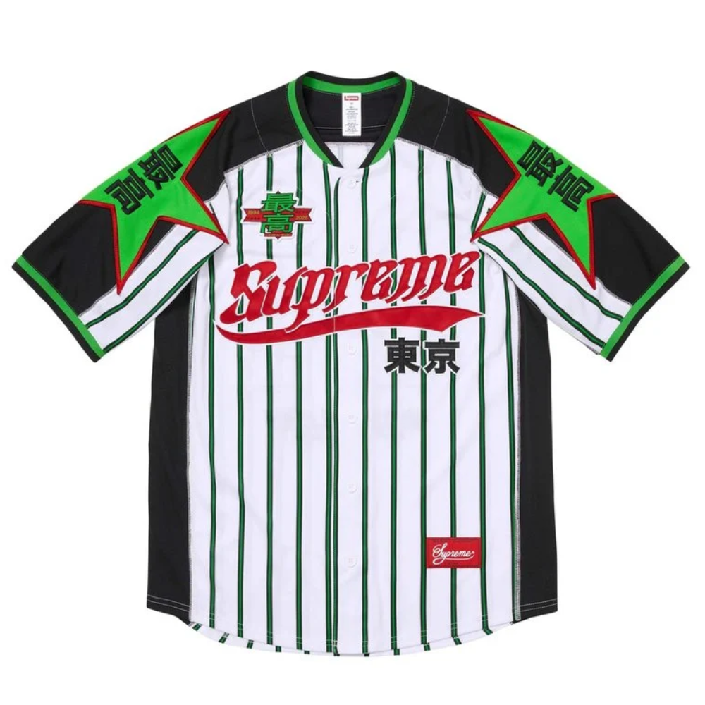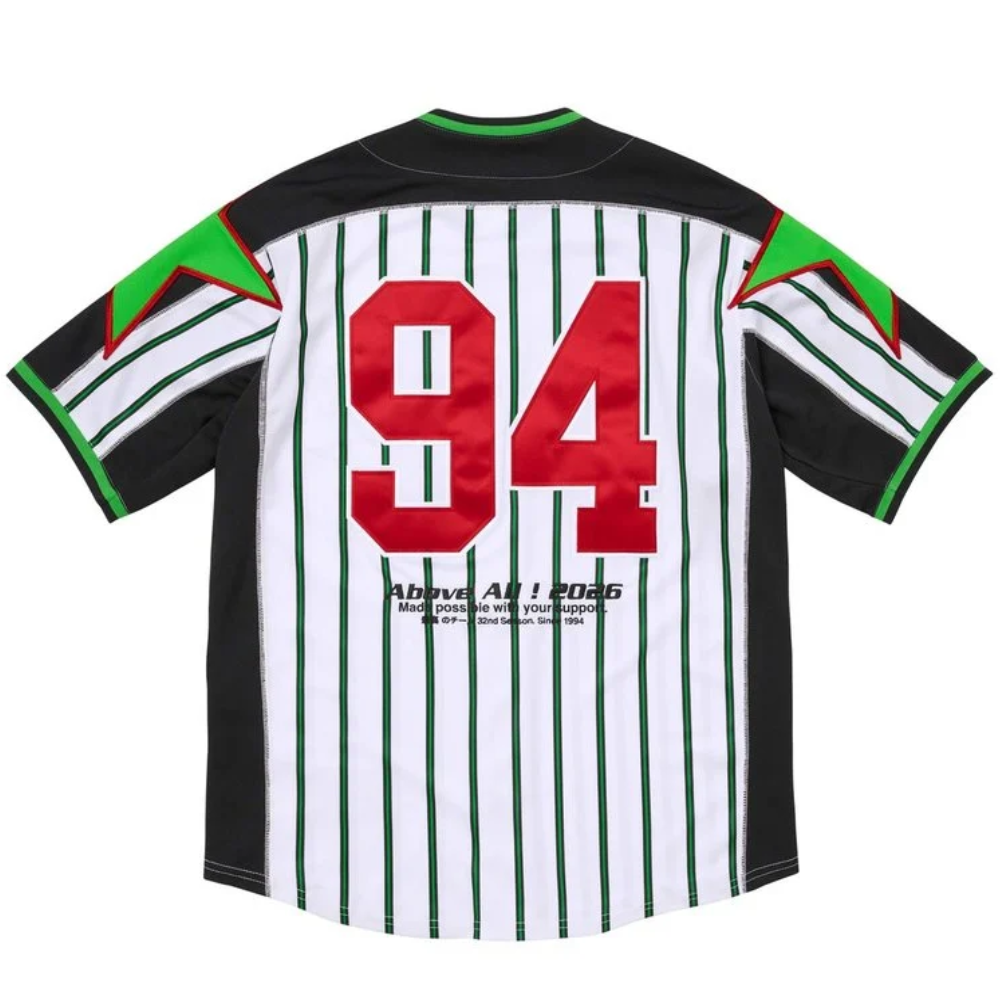 A Supreme Stars Baseball Jersey Stripe é uma das peças mais vibrantes e disputadas da coleção Spring/Summer 2026.