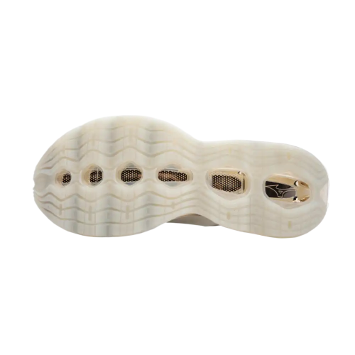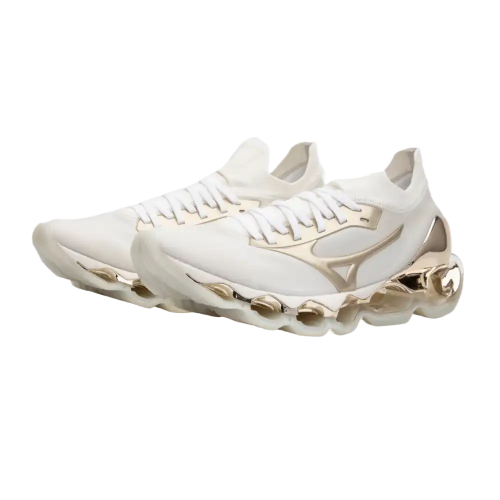 O cabedal metálico em tons de dourado e prateado traz um visual robótico e brilhante, inspirado na assinatura estética de Sorayama. Já a estrutura Wave Prophecy 10 oferece o máximo de amortecimento e estabilidade, graças ao sistema Infinity Wave tecnologia exclusiva da Mizuno que proporciona conforto extremo e resposta dinâmica a cada passo.