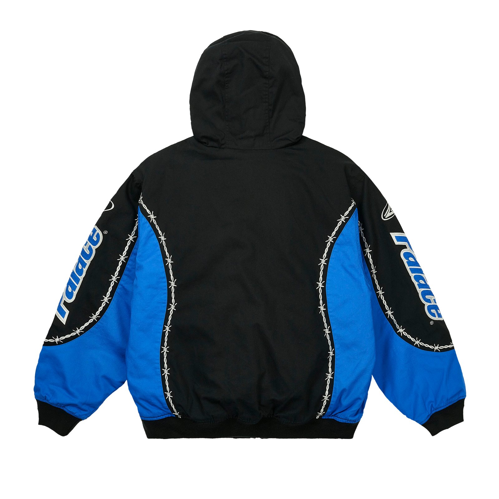 A marca “Palace” é exibida de forma proeminente no peito com um design de olhos e também verticalmente nas mangas.
