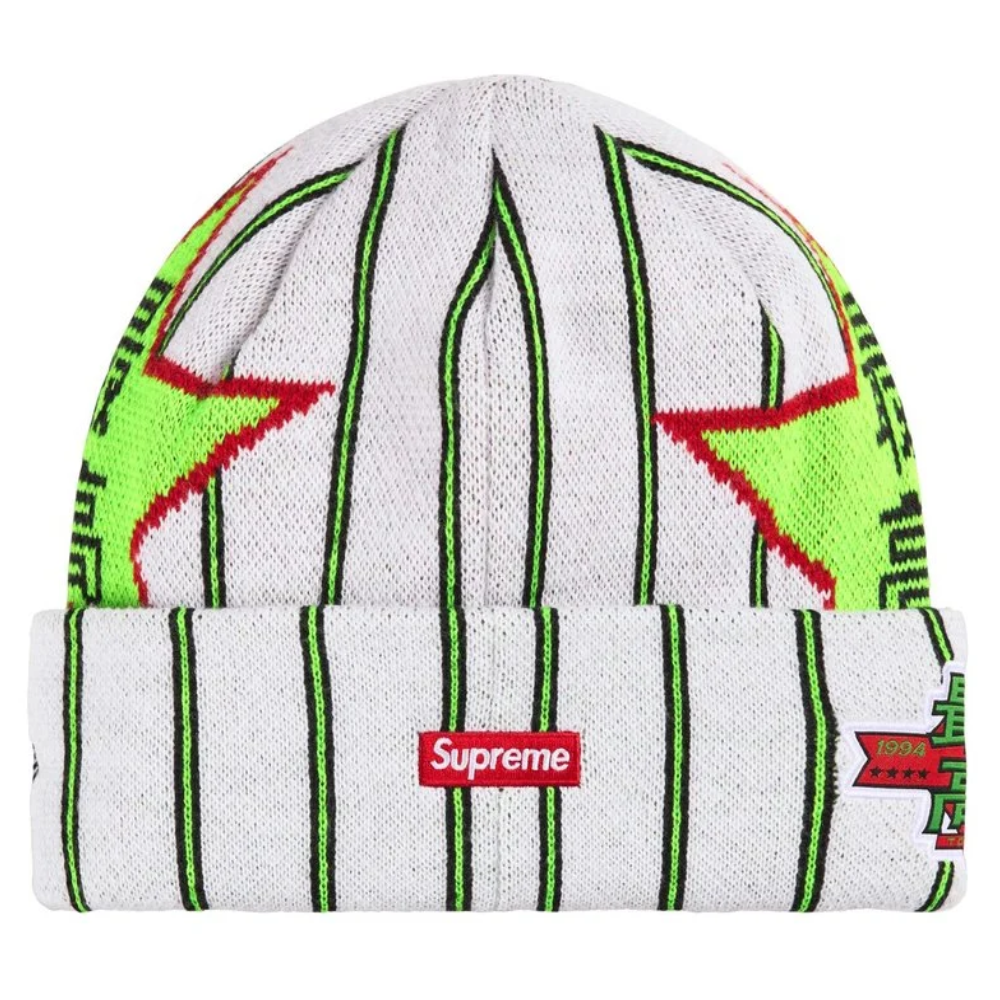 O Supreme New Era Stars Beanie Stripe é a peça definitiva para quem busca um acessório de alto impacto visual.